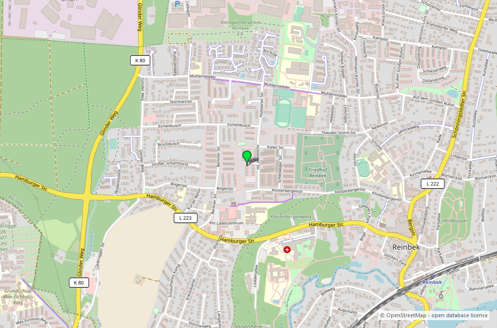 Diese Wohnung liegt in einer ruhigen Wohngegend der kleinen Stadt Reinbek vor den Toren Hamburgs. Die Bebauung setzt sich überwiegend aus Ein- und Zweifamilienhäusern sowie kleineren Mehrfamilienhäusern zusammen. Die Stadt Reinbek bietet alles, was das Herz begehrt. Aber natürlich ist Reinbek dank der guten Anbindung an den Hamburger ÖPNV (insb. S 21) und der insgesamt guten Verkehrsanbindung (insb. BAB 24) auch bei Pendlern sehr beliebt. Durch die vielfältige, vorwiegend klein- und mittelständische ansässige Unternehmen ist Reinbek aber weit mehr als nur Wohnort von Pendlern innerhalb der Metropolregion Hamburg. So stehen selbstverständlich auch in Reinbek alle erdenklichen Angebote zur Freizeitgestaltung, Bildungseinrichtungen und natürlich Einkaufsgelegenheiten zur Verfügung. Von der Lübecker Straße aus sind alle Ziele auch zu Fuß gut erreichbar. Überregional bekannt und als Ausflugsziel beliebt ist das Reinbeker Schloss mit Schlosspark und Museum am Mühlenteich.