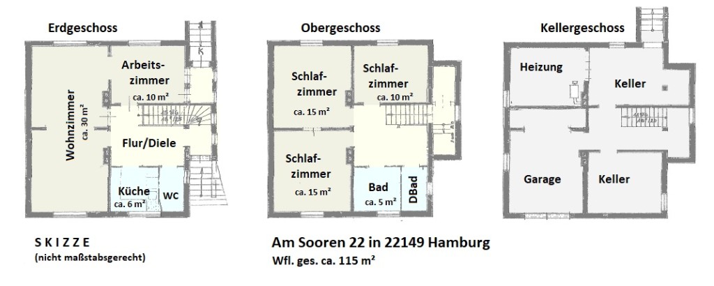 Im Erdgeschoss des ursprünglich 1926 erbauten und 1971 grundlegend umgestalteten Hauses befinden sich ein verbundenes Wohnzimmer sowie ein weiterer Raum, der z. B. als Arbeitszimmer dienen kann. Außerdem gibt es eine gut ausgestattete Küche und ein WC sowie eine Garderobe. Im Obergeschoss gibt es ein Vollbad und eine separate Dusche, dazu stehen drei Schlafräume zur Verfügung. Das Gebäude ist im Übrigen vollständig unterkellert. Zum Haus gehört außerdem eine Garage. Das Haus war langfristig vermietet und soll zukünftig auch nicht selbst genutzt werden, ein Mietvertrag wird daher ohne etwaige Befristung abgeschlossen. Es besteht die Möglichkeit einen Vertrag über einen Winterdienst zu übernehmen. Der Großteil der Nebenkosten, insb. Verbrauchskosten, werden durch die mietende Partei selbst getragen. Hierzu müssen Verträge mit den entsprechenden Versorgungsunternehmen abgeschlossen werden. Die Kosen für die Beheizung sind nicht in den Betriebskosten enthalten. Aus der letzten Abrechnung ergaben sich Kosten in Höhe von 242 Euro pro Monat, das kann aber nur ein Anhaltspunkt sein und ist stark abhängig vom Nutzungsverhalten.
