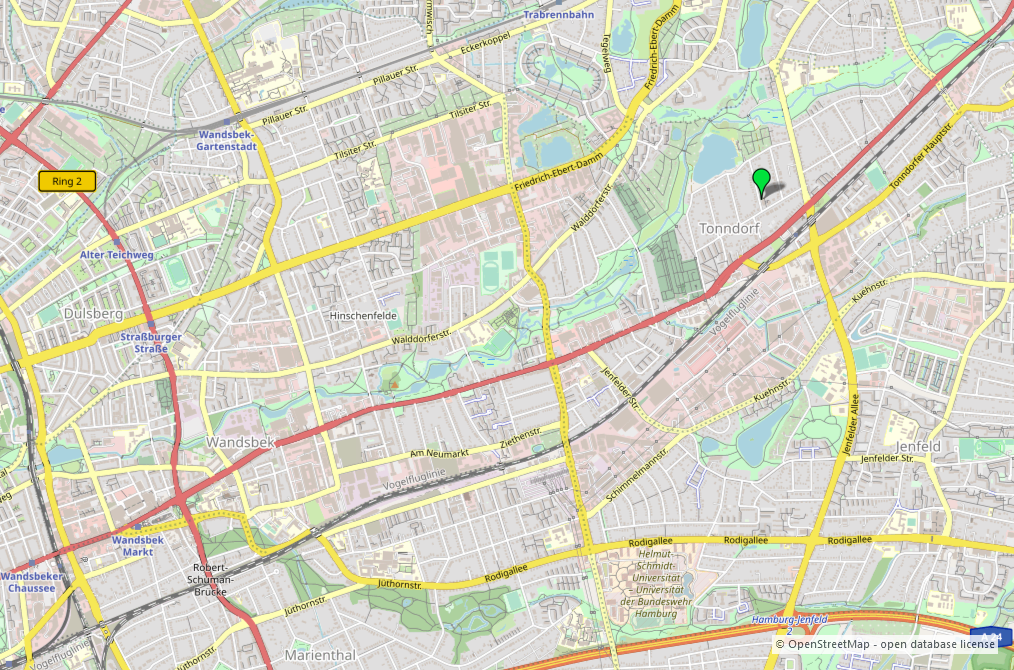 Etwa 4 km östlich vom Wandsbeker Markt liegt der Stadtteil Tonndorf. Die Einkaufsmöglichkeiten des täglichen Bedarfs bietet das neue Einkaufszentrum "Tondo", das Anfang 2006 eröffnet wurde. Alle Schulformen sowie Kindergärten sind in diesem Stadtteil vertreten. Naherholungsmöglichkeit bietet z.B. der Eichtal- und auch der Öjendorfer Park, die in wenigen Autominuten zu erreichen sind. Ausgesprochen gut ist die Anbindung an den öffentlichen Personennahverkehr, so ist z. B. die Hamburger City in ca. 15 Minuten mit der Bahnlinie RB 81 zu erreichen. Ferner pendeln Busse des HVV in kurzen Intervallen zum ZOB Wandsbek-Markt. Autobahnanschluß besteht über die ca. fünf Fahrminuten entfernte Anschlußstelle HH-Jenfeld an die A-1 und die A-24.