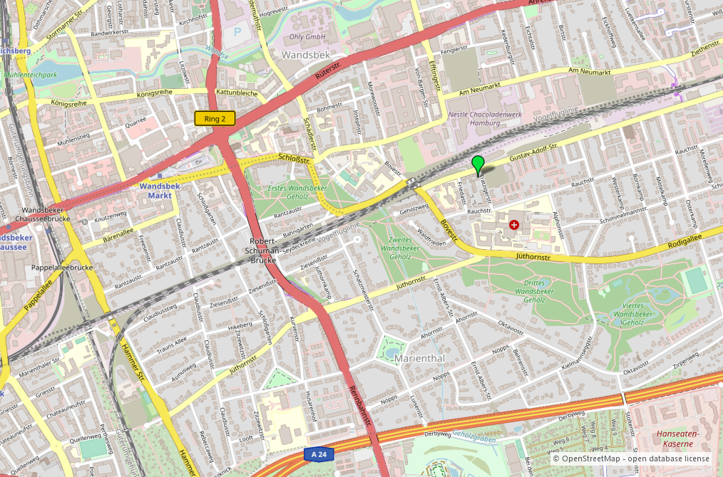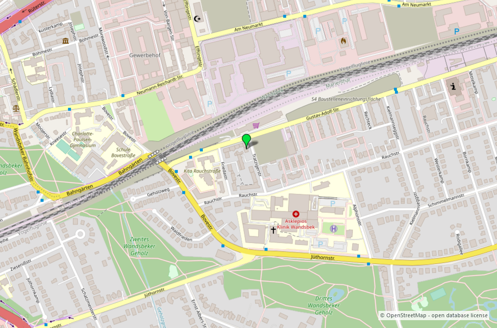 Die Tratziger Straße liegt im Zentrum von Wandsbek, nur eine Viertelstunde zu Fuß entfernt vom Wandsbek Markt. Dort befinden sich unzählige Einkaufsmöglichkeiten. Eine hervorragende Anbindung an den ÖPNV ist durch die Nähe des Regionalbahnhofs Wandsbek und Bus- und U-Bahnhof Wandsbek Markt gegeben.