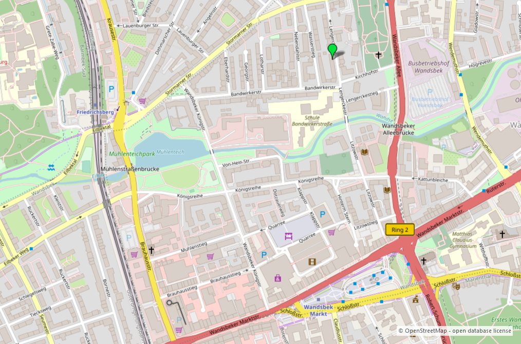 Der östlich der Hamburger Innenstadt gelegene Stadtteil Wandsbek ist dem gleichnamigen Bezirk zugeordnet. Kernbereich dieses Stadtteils ist der Wandsbeker Markt mit seinen vielfältigen Möglichkeiten, den täglichen Bedarf und darüber hinausgehende Bedürfnisse zu befriedigen. Dies leistet insbesondere das Einkaufszentrum Quarree mit über 90 Shops und einem täglichen Wochenmarkt sowie die Wandsbeker Marktstraße mit unzähligen Geschäften und Kaufhäusern, Ärzten sowie weiteren Versorgungseinrichtungen, die alle in wenigen Minuten zu Fuß von der Wohnung erreichbar sind. Alle Schulformen sind in der näheren Umgebung vorhanden. Der U- und Busbahnhof ermöglicht schnellste Verbindungen in alle Richtungen. Südöstlich vom Wandsbeker Markt erstreckt sich das Wandsbeker Gehölz mit altem Baumbestand. In der Umgebung befinden sich die Schön-Kliniken Eilbek, das Bundeswehrkrankenhaus und die Asklepios-Klinik Wandsbek. Über den Wandse-Wanderweg, dann dem Eilbektal folgend, kann man ohne Verkehrsbeeinflussung bis an die Alster und in die Innenstadt gelangen. Die Versorgungs- und Verkehrslage ist also als sehr gut zu bezeichnen. Die Lengerckestraße selbst ist als Nebenstraße eine einspurige Einbahnstraße mit Tempo-30-Zone. So kann man hier ruhig wohnen und nur wenige Gehminuten entfernt pulsiert das Großstadtleben.